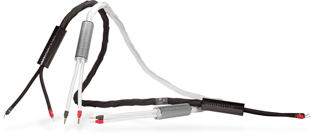 Galileo LUX speaker cables were created to bring scale and coherence into natural alignment, allowing the system to express its full presence without assertiveness or strain. They draw on the same dual-geometry foundation that defines the loom: a pure silver ribbon laminate chosen for its harmonic richness and tonal weight, and multi-gauge 6N silver AirStrings suspended in a true air dielectric to preserve speed, delicacy, and fine transient detail. Together, these elements were selected to rest at the ideal balance point between resolution and musicality.