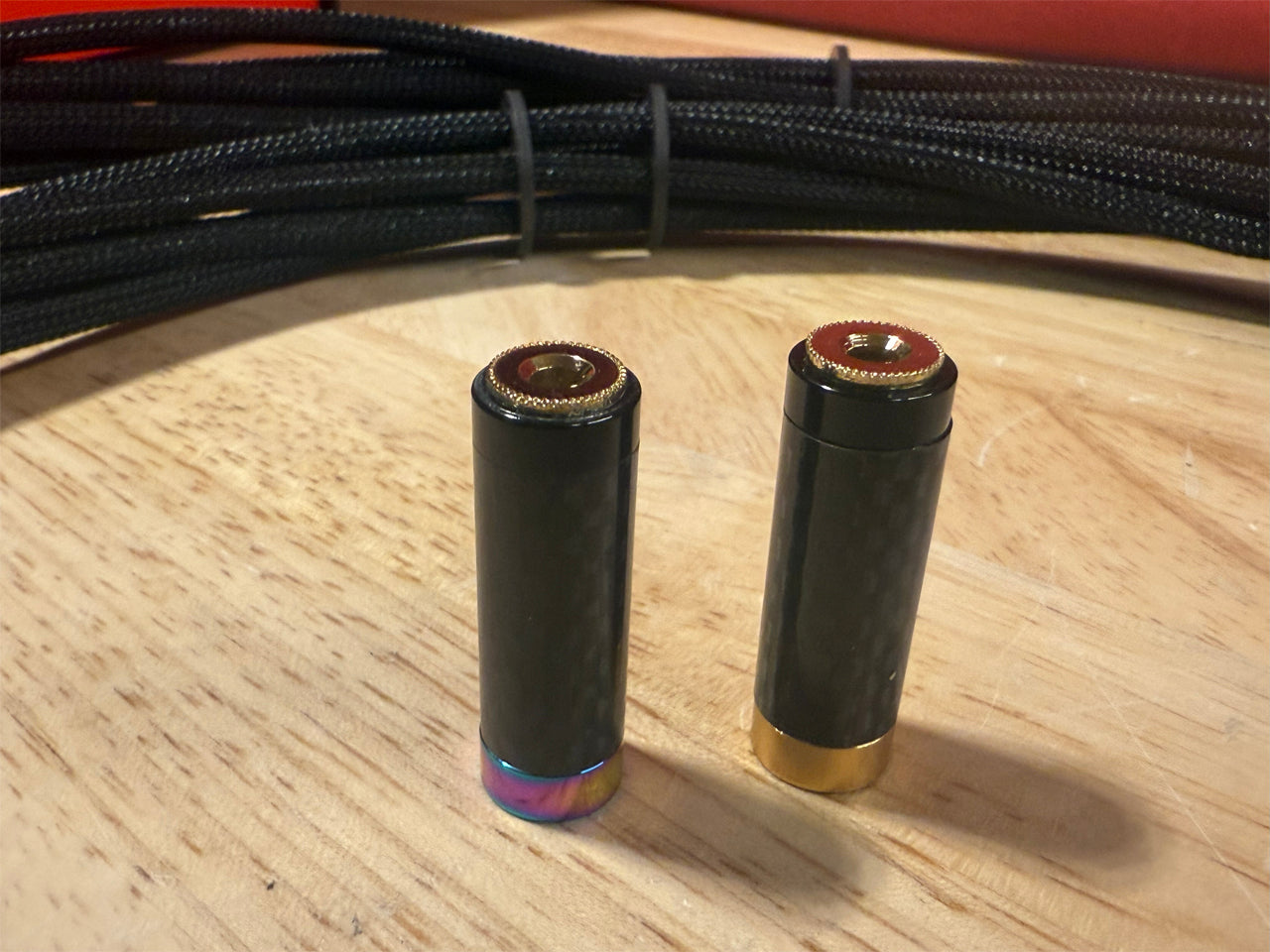 Each hand-made geometry and ground plane is run through carbon fiber discs to maintain separation between conductors for lower capacitance and crosstalk. Voicing the cables to your system is easy with supplied Gold and Silver SRX Carbon Fiber UEF filters. Gold will deliver a warmer and more liquid sound, while silver has increased air and focus. You decide between Gold and Silver Tuning Circuits by listening to your two options for a bespoke system match.