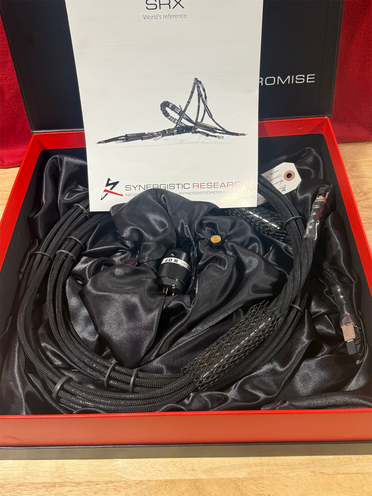 On sale is a 2.0m Synergistic Research SRX Ethernet Cable from a trade-in. The cable is in excellent condition and comes with Gold and Master Tuning Bullet, grounding plug and original box.